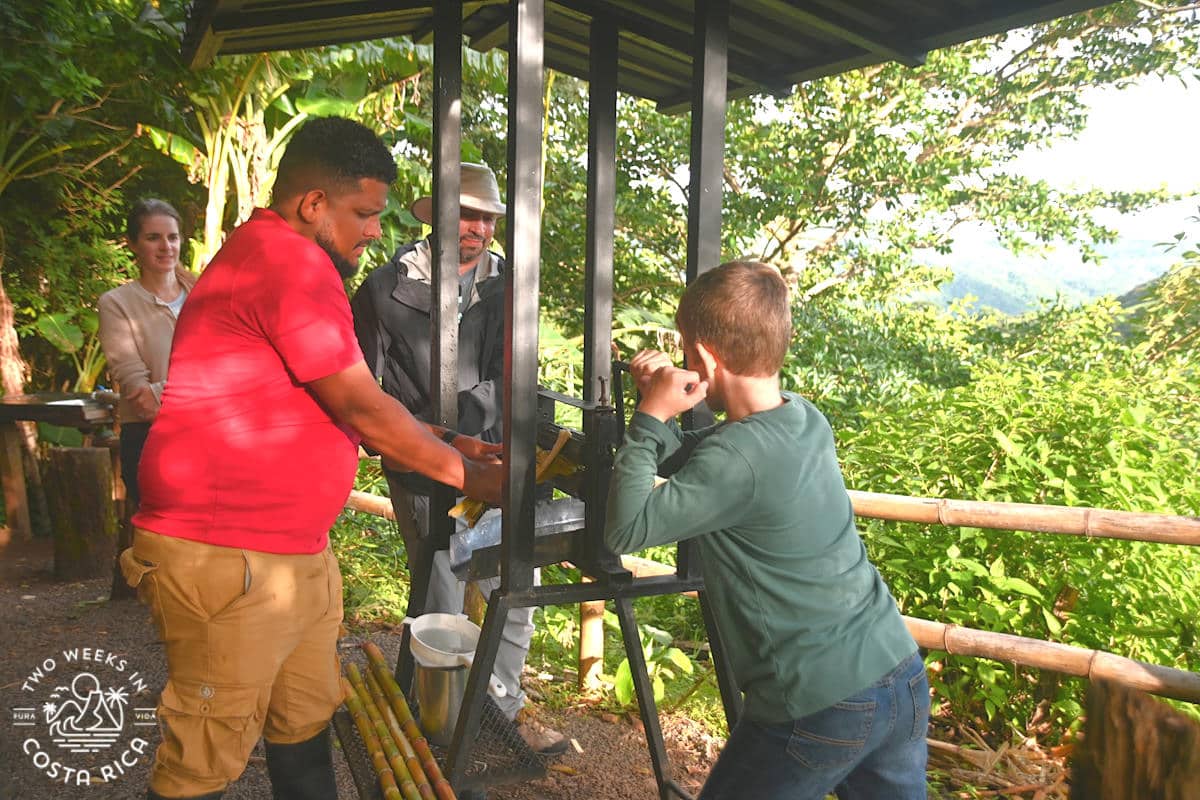 As the tour moves through the farm, you’ll learn how they produce five types of cheese and get to taste each one. You’ll also walk through the organic vegetable garden, into coffee fields, and hike an easy forest trail (15 minutes) to a nice viewpoint. Along the way, you’ll learn about local plants, wildlife, cultural traditions, agro-forestry practices, and sustainable tourism.